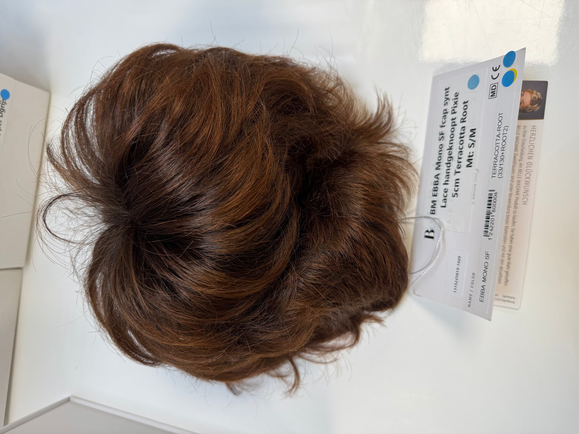 Short, 5-10cm, Lace, Hand Knotted, Pixie, S/M, Terracotta Root, Red
